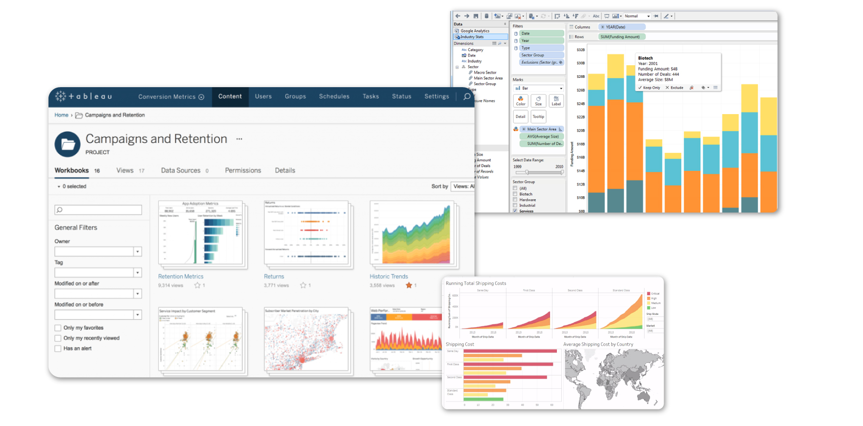 Tableau cuenta con una interfaz didáctica basada en soltar y jalar. Es de fácil conexión a diferentes fuentes de datos (Excel, SQL, etc), además, la hacen una herramienta muy útil en la visualización de datos para el análisis de KPI’s, métricas y dimensiones, y, combinado al uso de filtros, parámetros y herramientas avanzadas hace que la interpretación de datos sea autónoma y dinámica.
