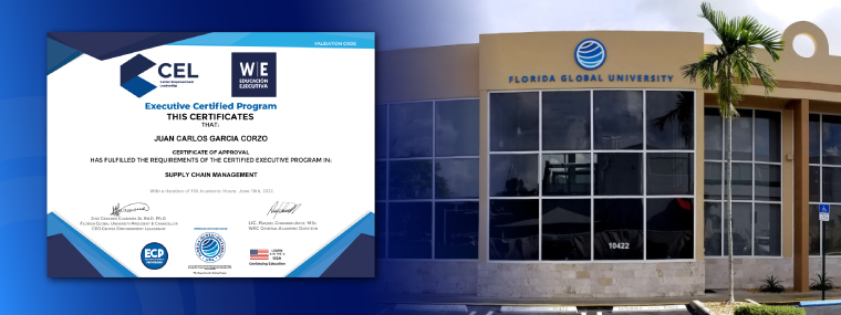 a nombre del Centro Educativo Latinoamericano (CEL) por 150 horas académicas, avalado por la Florida Global University en EE.UU.